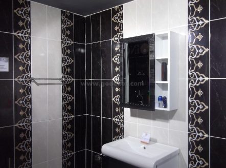Dikey döşeme, siyah ile beyazın uyumu, nakışlı dekor. Siyaha canlılık katmış beyaz renkler, nakış dekorla...