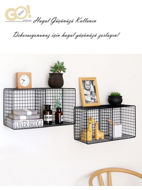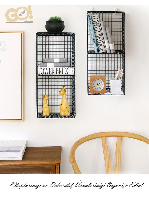 Dekoratif Metal Telli 2 Gözlü Kafes (GRİD) Duvar Rafı; tekli, ikili veya üçlü alarak dekorasyonunuz için hayal gücünüzü zorlayın. L-kanca sayesinde Yatay ve dikey olarak montajını istediğiniz gibi yapabilirsiniz. Kaliteli, şık ve modern bir görünüm elde etmek için metal telden üretildi. 2’li raflar dekorunuza modern bir dokunuş katmak için mükemmel bir üründür. Kitap ve dekoratif ürünlerinizi organize ederkende farklılığınızı gösterin.